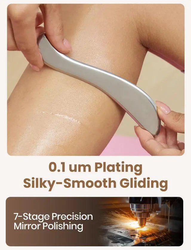 Gua Sha: Gua Sha releases stagnant energy (chi) to enhance circulation. The mirror-finished Gua Sha Tool glide smoothly without scratching the skin. Compatible with massage oils and lotions for effortless movement, fit for facial & body gua sha.