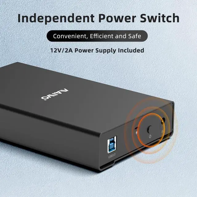 This USB 3.0 to SATA External Hard Drive Enclosure was designed for 2.5 3.5 inch HDDs SSDs, has an independent power switch which is convenient to use without plugging/unplugging power adapter and the 10mins sleep mode can reduce drives consumption.
