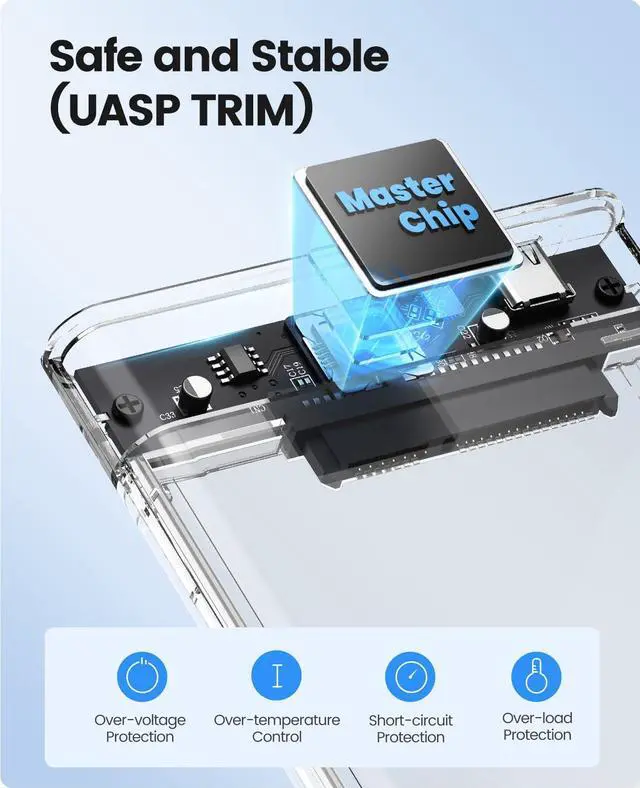 Transparent Design: The external hard drive enclosure is made by high quality PC board with the advantage of anti shock and also helps you to monitoring the hard drive working status easily and distinguish the data you want, no need to open the enclosure cover
