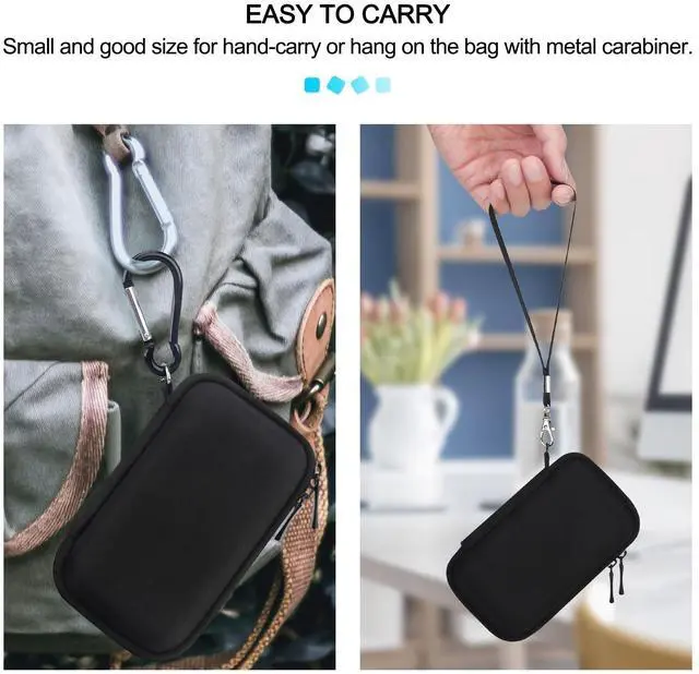 • TRAVEL-READY CONVENIENCE: Handy and compact SanDisk Extreme V3 SSD carrying case comes with a comfortable wrist strap for easy carrying on wherever you go, includes a detachable carabiner for attaching to backpacks or keychains, ensuring your device are always within reach. Smooth and durable dual metal zippers make it easy to open and close.