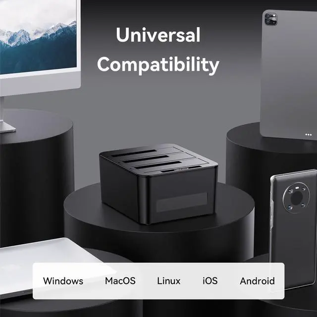 Reliable External Storage System for Individuals and businessThe 3.5 hard drive enclosure supports 2.5/3.5 inches HDD and SSD, max capacity up to 20TB for each hard drive, it's a ideal external hard drive enclosure for personal or enterprise using.Save space on your desktop or laptop.
