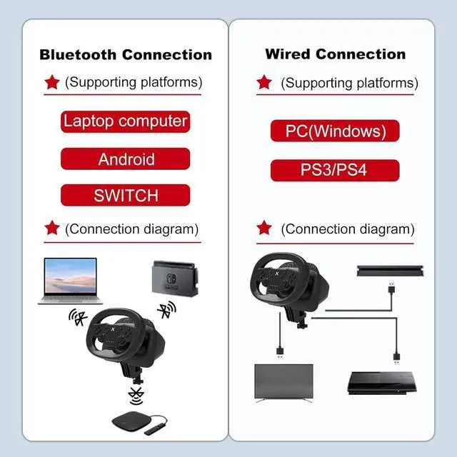 DOYO Bluetooth Racing Wheel With Pedals Multi-Platform for Nintendo Switch/PC/PS4/PS3/iOS and Android Phones