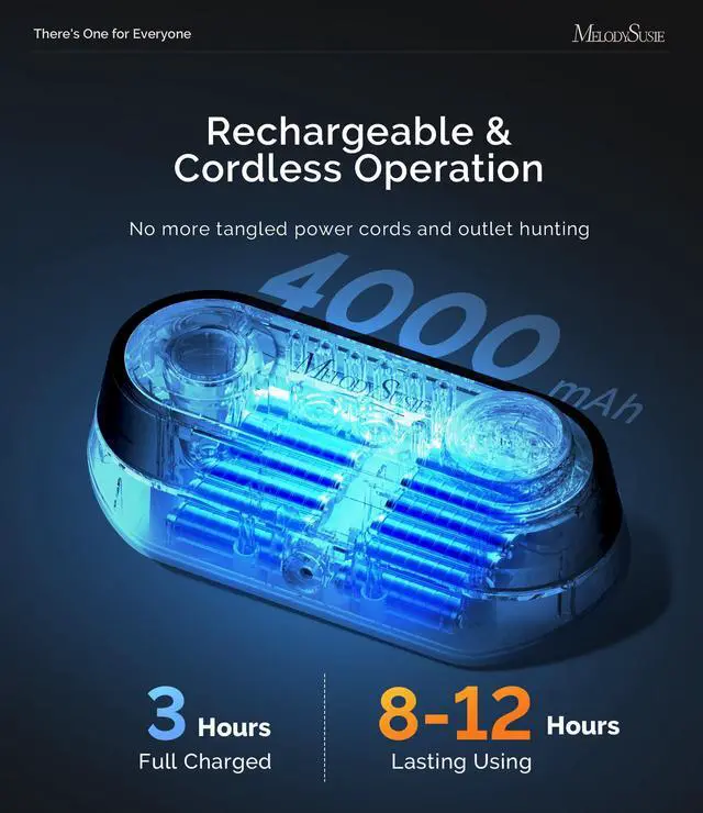 Cordless Rechargeable Nail File Enjoy up to 812 hours of uninterrupted use with a built-in 4000mAh rechargeable battery and a Type-C fast charging port. Say goodbye to tangled cords and outlet hunting with the MelodySusie upgraded nail dremel - ideal for manicure pedicure at home, outdoors, or while traveling.