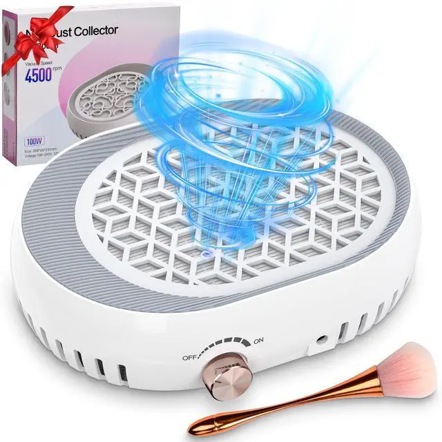 Powerful Suction & 4500RPM Adjustable Motor Equipped with a high-speed DC12V motor, this dust collector for nails delivers adjustable suction up to 4500 RPM. Effortlessly captures fine nail dust and debris, keeping your workspace clean and safe.