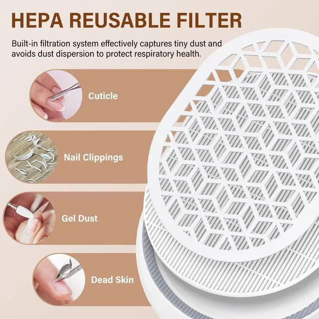 Reusable Fine Filter & Easy Cleaning The magnetic removable filter captures 360° nail dust effectively. No need for frequent replacements just take it out, clean with a brush or blow dryer, and reuse. Saves time and money.
