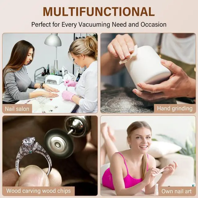 Rotary Knob & Multi-Gear Speed Control Easily dial the suction intensity from low to high with a simple rotary button. Perfect for precise control when filing, buffing, or polishing nails, ensuring comfort for both manicure and pedicure.