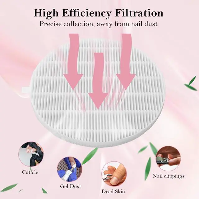 High-Efficiency Filtration : Made from premium non-woven PP material, this filter effectively traps nail dust, fly ash, and other fine particles, keeping the air clean and breathable for you and your clients.