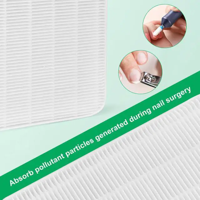 • % Premium H12 HEPA Nail Dust Filter can collect 99% of fingernails, nail dust, fly ash and other small particles, effectively improving the air in your environment.