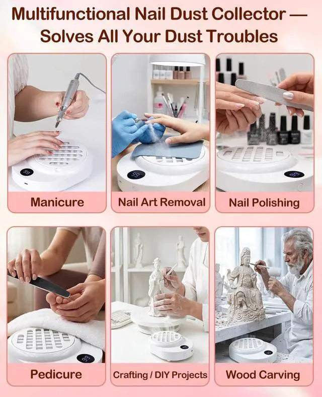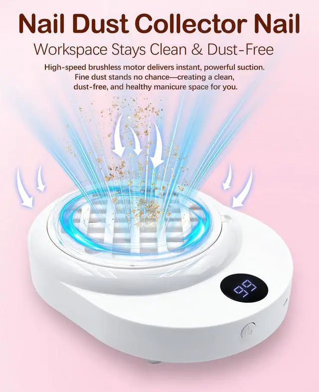 POWERFUL SUCTION PERFORMANCE Tired of fine nail dust spreading everywhere during filing? This high-speed brushless motor delivers strong suction with a 6000RPM brushless motor to capture acrylic, gel, and powder dust instantly, improving cleaning efficiency. Designed as a reliable nail dust collector tech and nail vacuum dust collector for salon and home use.