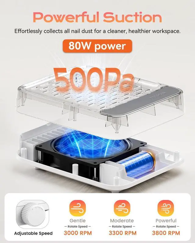 Adjustable Speed Nail Dust Collector with Reusable Filter
