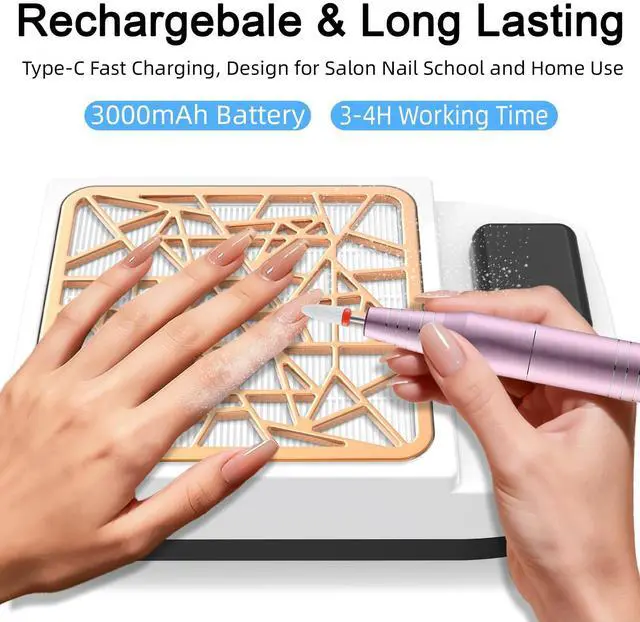 Cordless Nail Dust Collector, 4000RPM Rechargeable Nail Fan Dust Collector with Adjustable Speed & Reusable Filter, Compact for Nail Tech Beginner Nail Students & Home Use, Mother's Day for Moms Gift