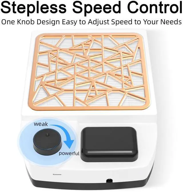 With convenient knot for speed control, you can easily adjust the suction power between LOW and HIGH settings to suit your needs, giving you clean comfortable dust capture whether you're shaping natural nails or refining acrylics. One-knob speed adjustment makes this portable nail dust collector easy to control for both novices and professional nail artists, and can also meet your various usage scenarios