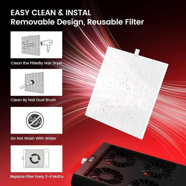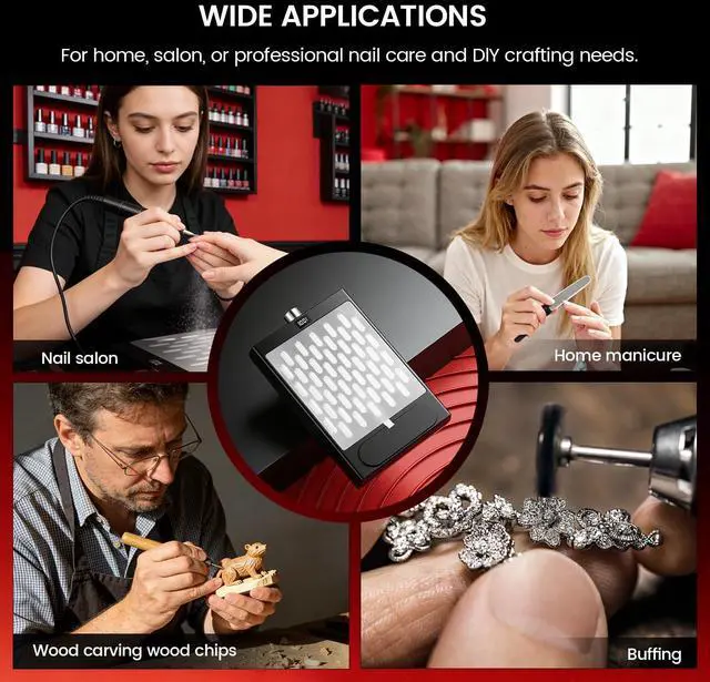 5. Cool & Portable Design: Featuring a bottom heat dissipation system, this nail dust collector quiet operates coolly and reliably during extended use. Its ultra-thin body make this nail fan dust collector exceptionally portable for mobile technicians and salon use.