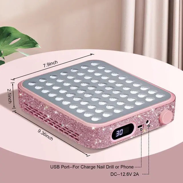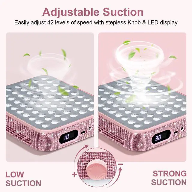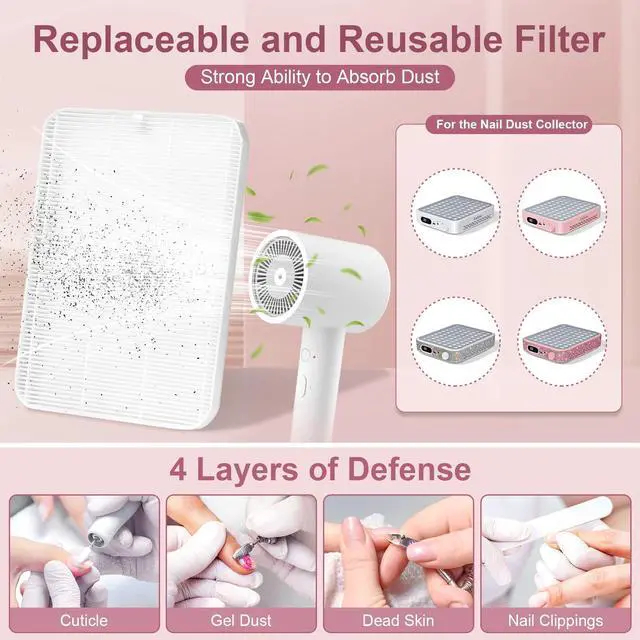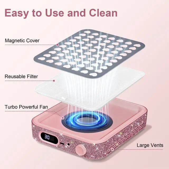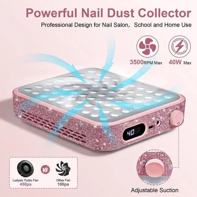 Nail Dust Collector with 2 Reusable Filters,Nail Vacuum Dust Collector Quiet for Nail Tech Art, Powerful Nail Fan and Duster Collector,Nail Vacuum Cleaner for Salon and Home(Pink Diamond)