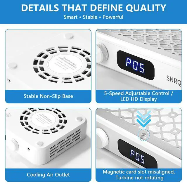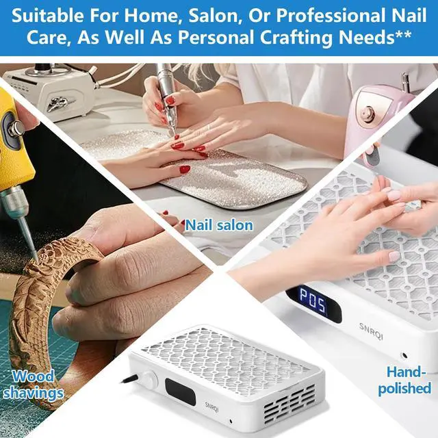 5-speed precision control: the nail dust collector tech can easily adjust 5 wind speeds through 1 knob control and display on the LED screen. It enables you to match work according to tasks. Rate, it is easy to use for both novelties and professional nail artists, and can also meet your diverse usage scenarios. Even with gloves on, the knob can rotate smoothly, providing easy mid-term adjustment for professionals and beginners