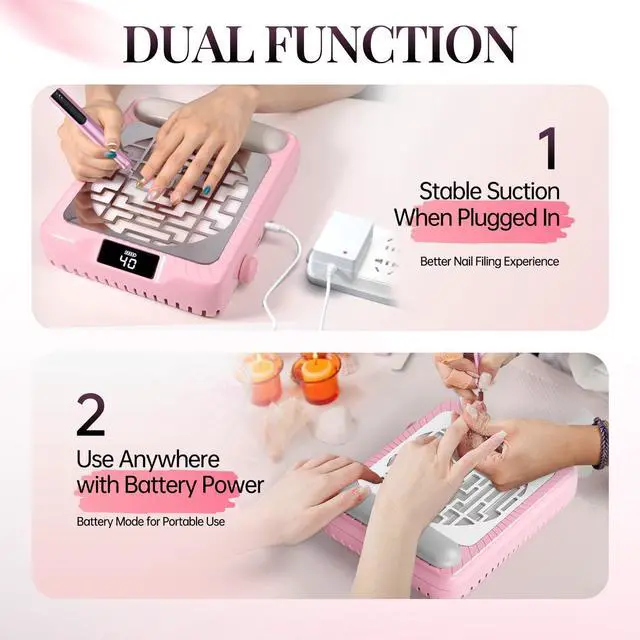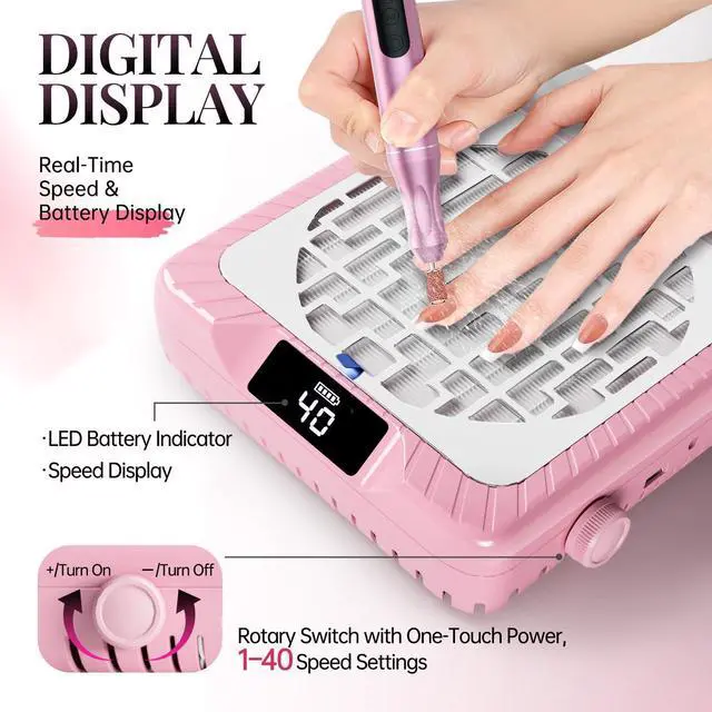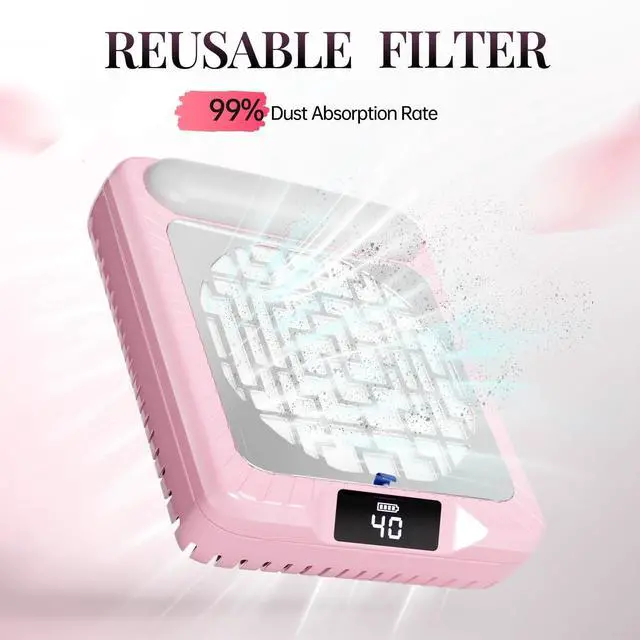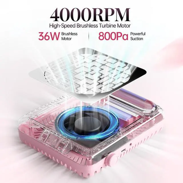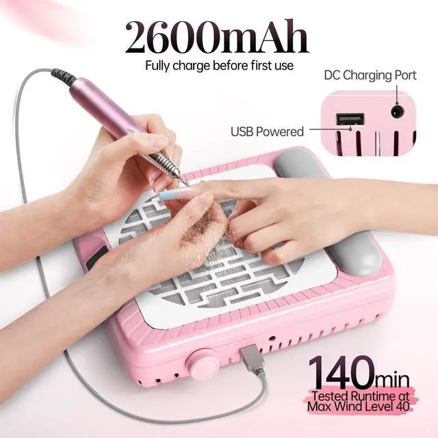 Experience salon-quality manicures at home with krofaue rechargeable nail dust collector. Featuring a 2600mAh battery delivering 140 minutes of continuous runtime, this nail dust vacuum provides 650-800Pa suction power to instantly capture nail filings and dust.