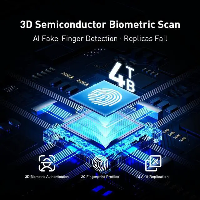 Fingerprint + LCD Dual ProtectionEquipped with a precise fingerprint sensor supporting multiple fingerprint registrations. Hardware-level encryption ensures absolute data security. The LCD screen displays real-time connection status, storage capacity, and security mode, putting you in full control.