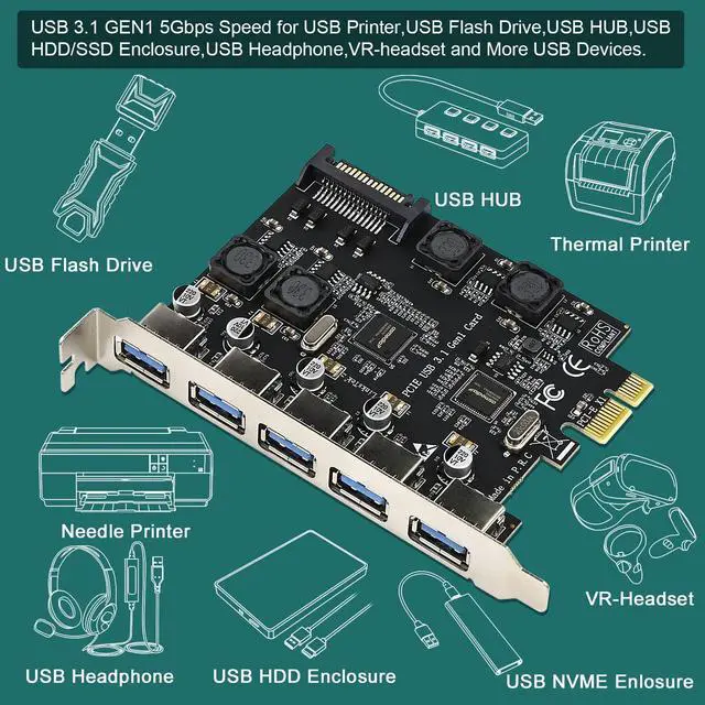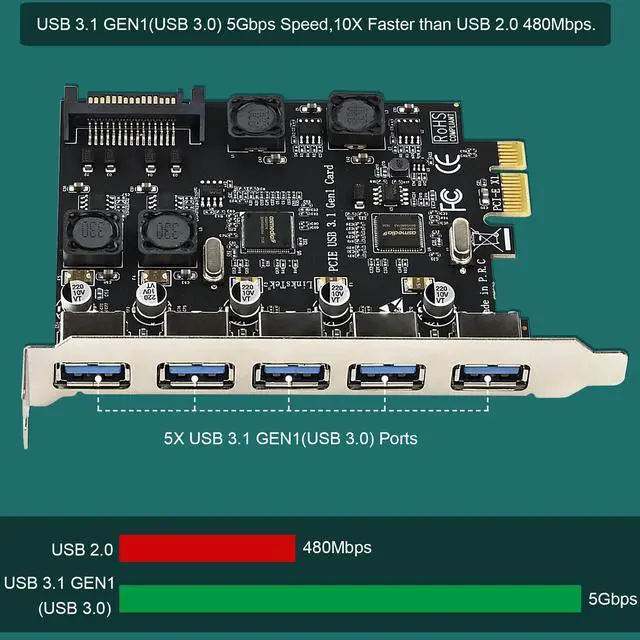 5-Ports 5Gbps Max PCIE USB 3.1 GEN1(USB 3.0) Expansion Card