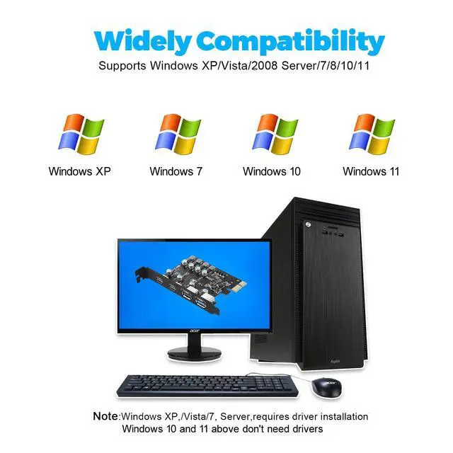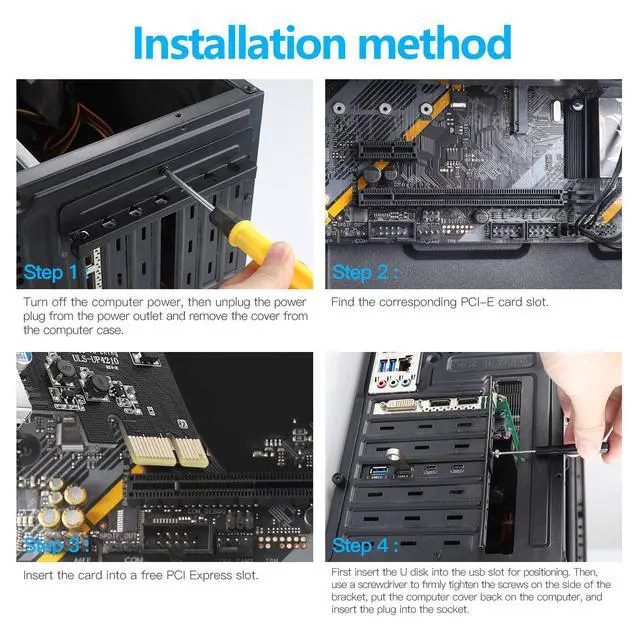 - Add 4 ports on the desktop through the PCI Express slot,-each port has a maximum data transmission speed of 5Gbps to achieve fast connection.