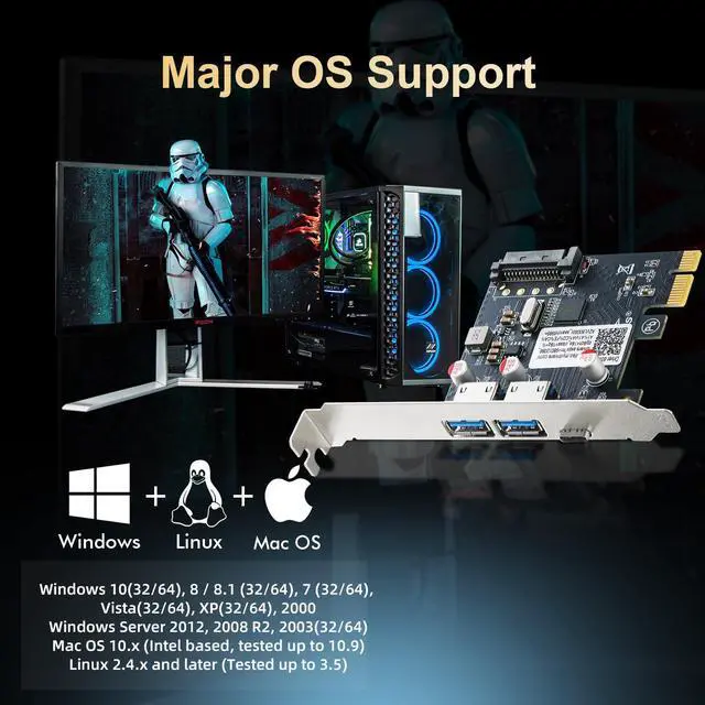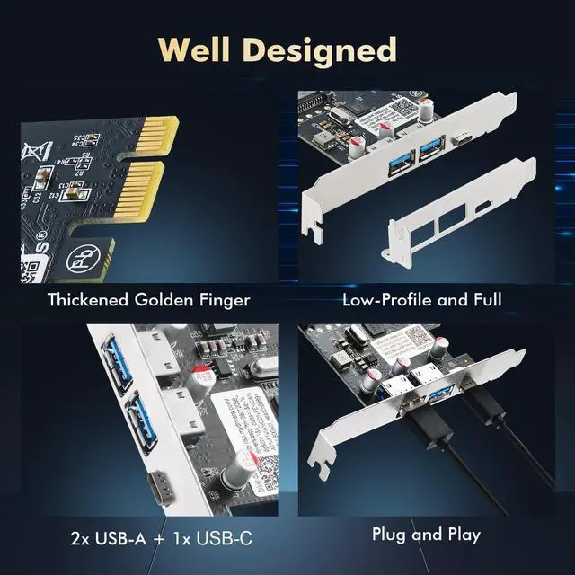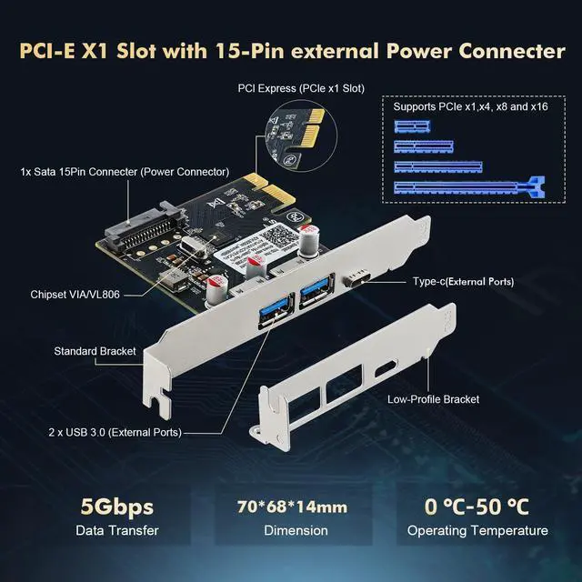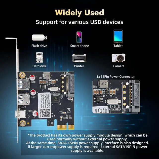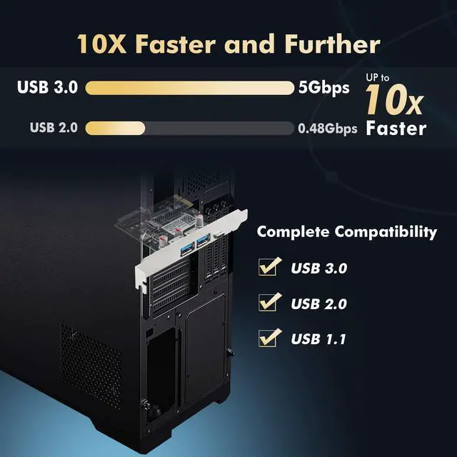 It is fully backward compatible with USB 2.0 and 1.1 specifications, ensuring seamless connectivity of legacy USB devices.It has a PCI Express 2.0 x1 interface that is backwards compatible with PCI Express 1.0 and is perfectly suited for both PC Host and Add-In Card applications.