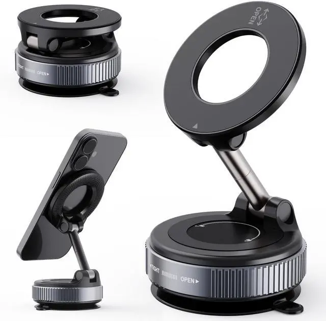 Super Stronger Magnetic MagSafe Car MountThis powerful magnetic phone holder for car features the latest top-grade (N52) neodymium magnets with a dual-ring magnetic array, delivering shake-proof security and long-lasting anti-demagnetization performance, boasts magnetic strength 300% stronger than standard magnets, providing up to 96LBS of magnetic force, It can firmly supports your device while allowing you to drive without distraction. it easily and securely holds your phone through bumps, sharp turns or even sudden stops, no worrying of dropping your phone