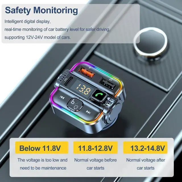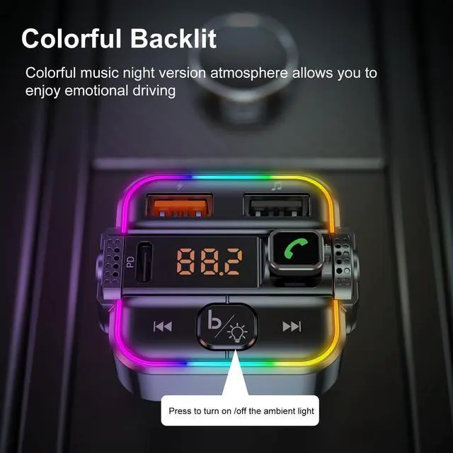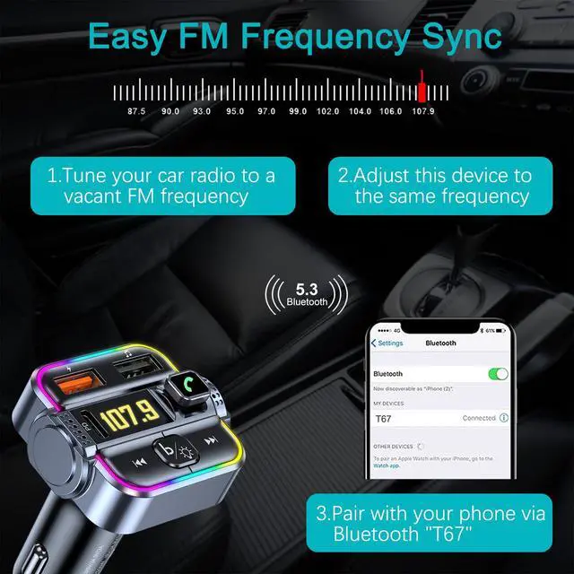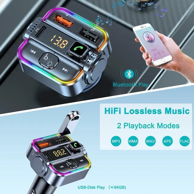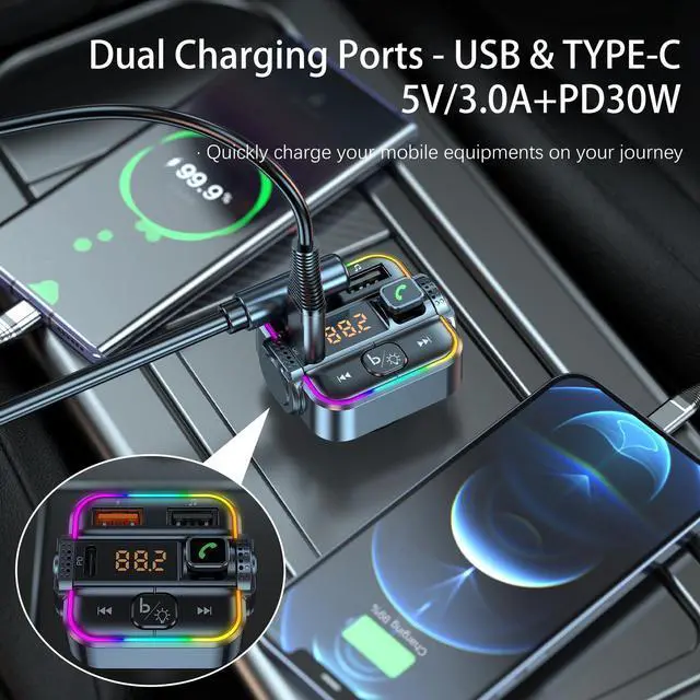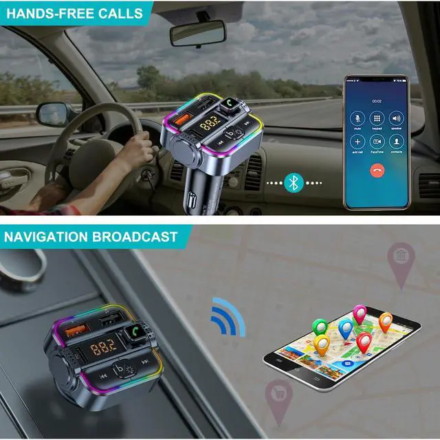 Car Bluetooth FM Transmitter with USB/USB C Ports