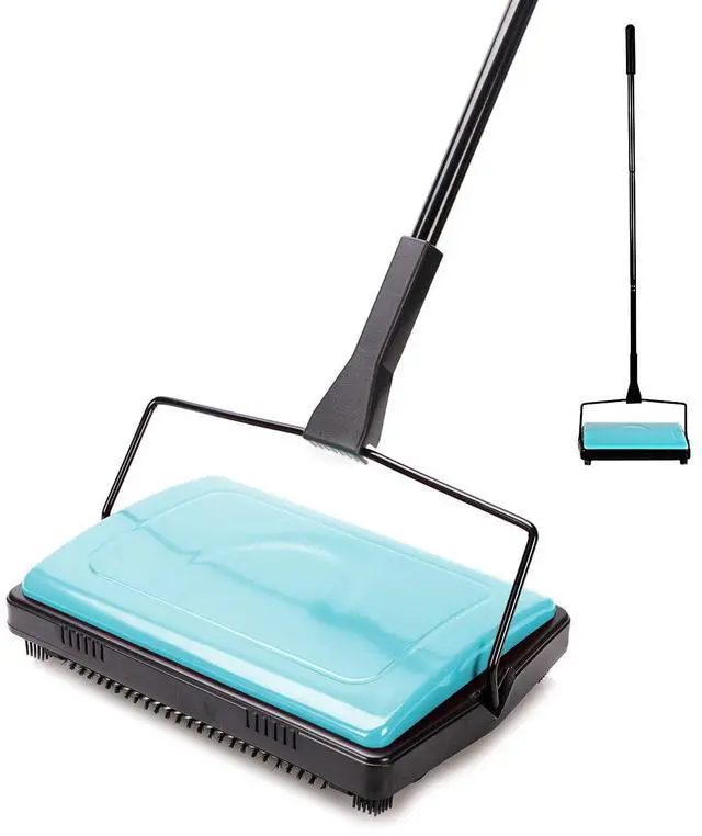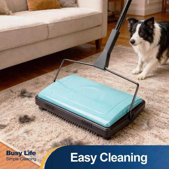 Carpet Sweeper Cleaner for Home Office Low&Undercoat Carpets Rugs Pet Hair Dust Scraps Paper Small Rubbish Cleaning with a Brush Blue