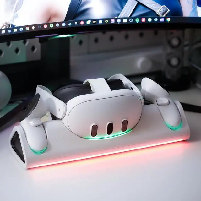Organized Design: Keep your Quest 3 headset and controllers neatly stored in a single, compact charging station that reduces clutter and enhances overall aesthetics