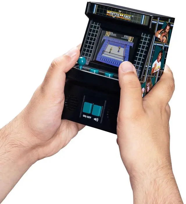 • ARCADE CLASSIC WWE WRESTLEMANIA: Battle it out with 10 WWE Legends in a throwback to the ultimate steel cage showdownslam your way to victory in this mini arcade classic!
