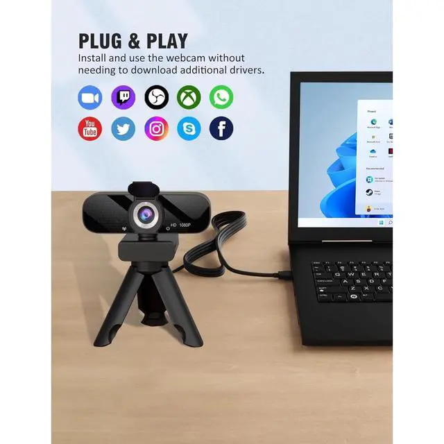 's 1080p HD webcam features a wide-angle lens, delivering crisp, fluid video at 30fps. Ideal for streaming, calls, gaming, and online teaching. This HD webcam offers easy plug-and-play setup. Universally compatible with USB ports, it requires no additional drivers and includes a 5ft cable for instant use.