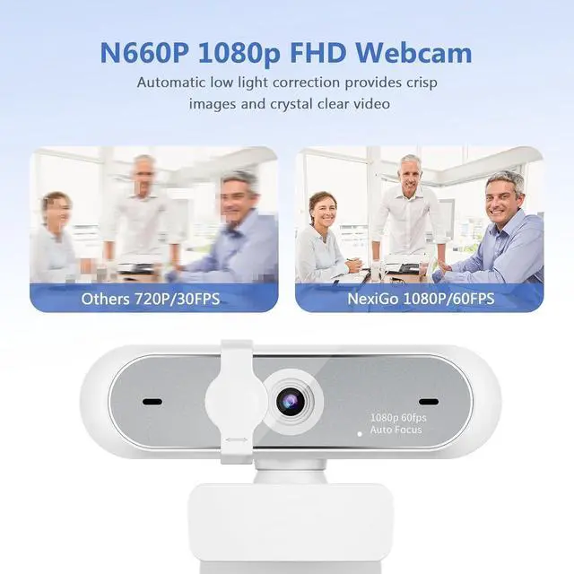 Eyesoul N660P (Gen 2) 1080P 60FPS Webcam with Software Control, Dual Microphone & Cover, Autofocus, HD USB Computer Web Camera, for OBS/Zoom/Skype/FaceTime/Teams/Twitch, White