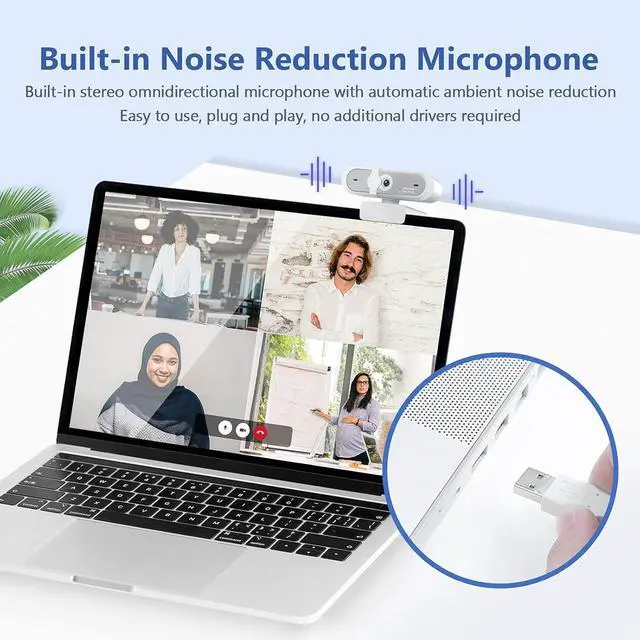 Built-in Stereo Noise Reduction MicrophoneThe built-in stereo mic is equipped with an omnidirectional microphone that filters background noise, perfect for online teaching, blogging, conferencing, Live streaming, video calling, social gaming. It can provide the best video experience even in a noisy environment.