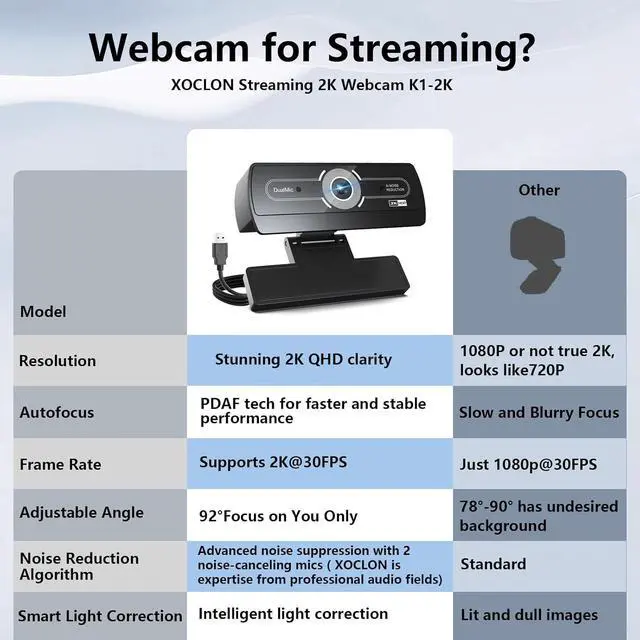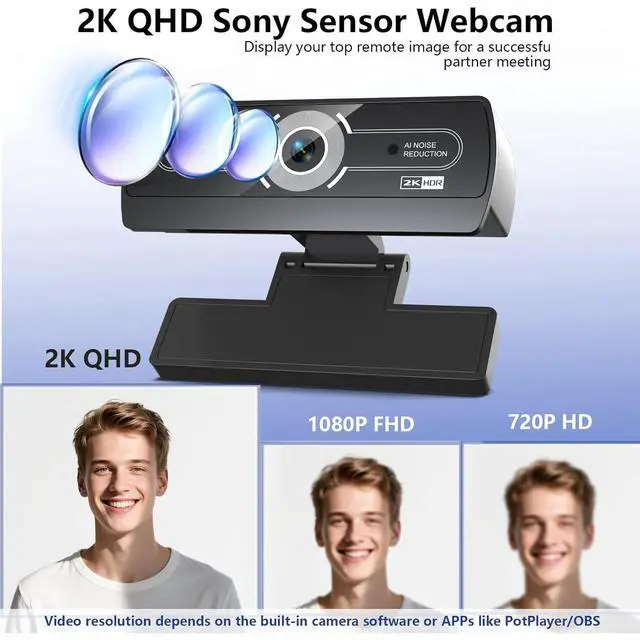 Webcam with Microphone featuring Built-In Noise-Cancelling technology - The noise-canceling microphone reduces background noise to enhance the sound quality of your video. Even in noisy surroundings, viewers can hear your voice loud and clear through a dedicated streaming camera. Great for webinars, video conferencing, and live streaming with a professional streaming camera.