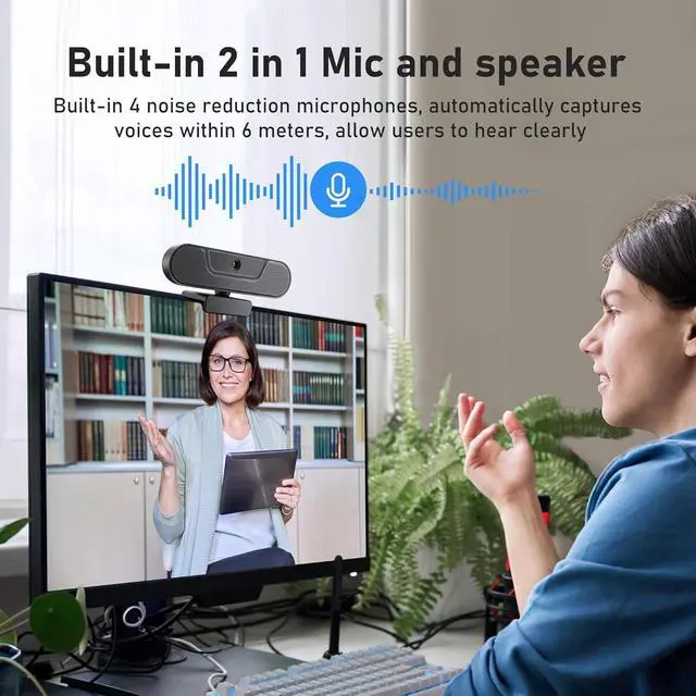 3W Speaker & 4 Noise-canceling Micrs: V20 Webcam with 4 omnidirectional Noise-cancellation microphones, 3W speakers and upgraded beamforming algorithm, computer camera can automatically filter out background noise and echo, keyboard typing and other environmental noises, which delivers a loud and clear voice (pick up within the distance up to 8m/26ft). Drectly supports two way audio, no external speaker