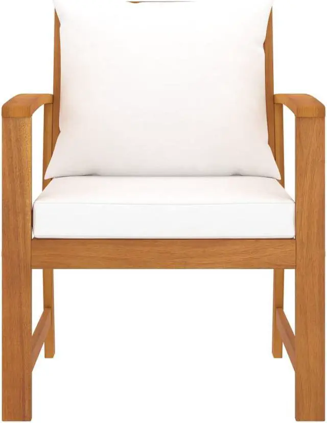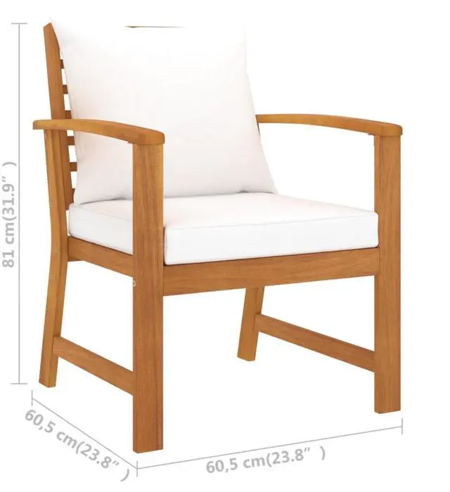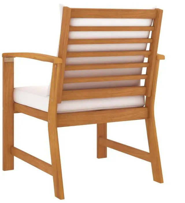 This chair set is made of high-quality solid acacia wood, a tropical hardwood, which is weather-resistant and highly durable. Delivery includes seat and back cushions for added comfort and support. Sit down for a lovely outdoor dinner or just relax and enjoy the warm weather with this classic patio chair set.