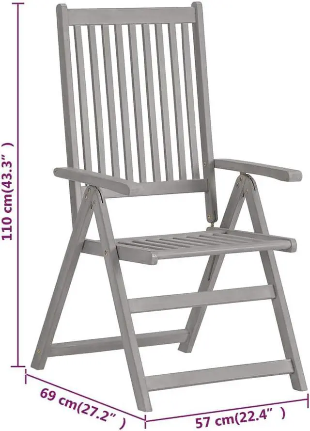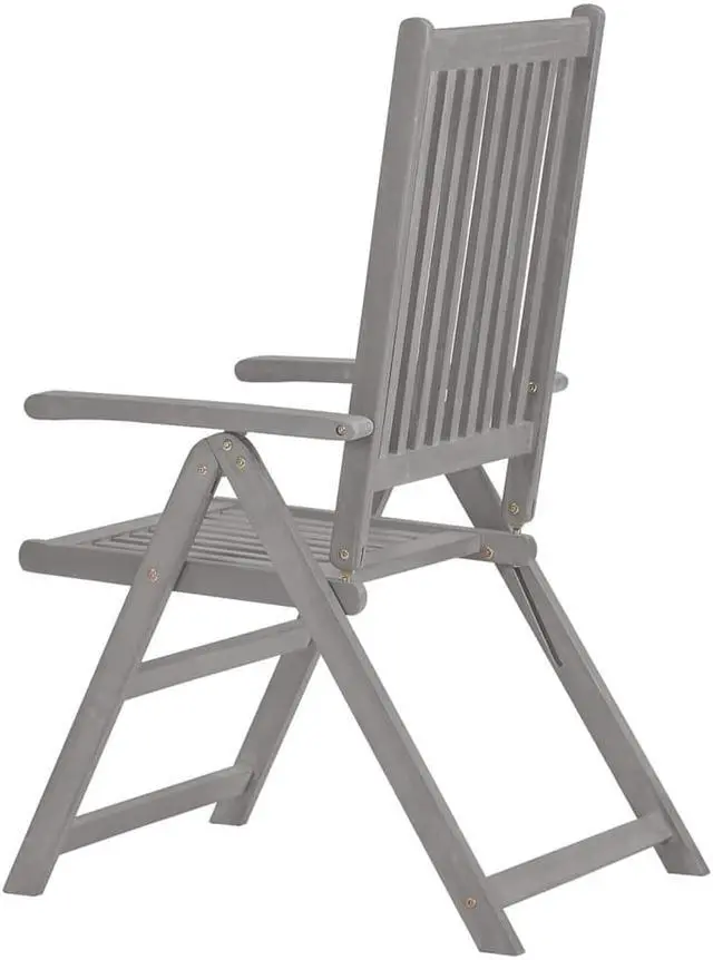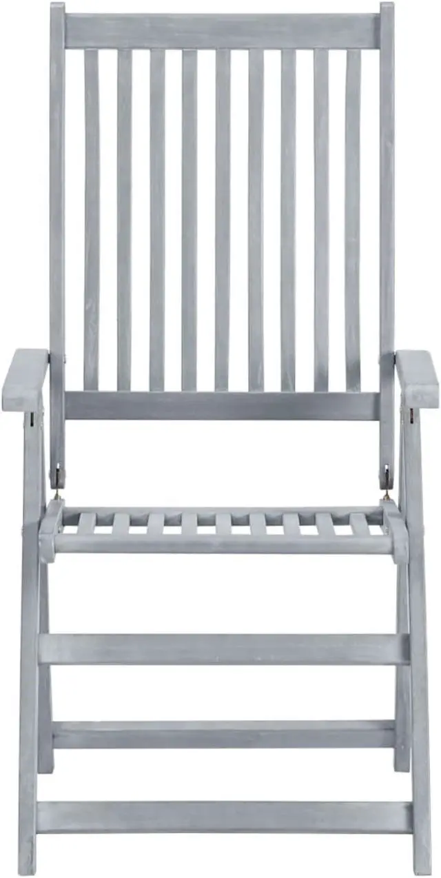 This trendy patio reclining chair set elevates the comfort of your outdoor space! These armchairs are made of solid acacia wood with a gray wash finish, a hardwood with dense grains. These beautifully-designed outdoor chairs are stable, durable and eye-catching. The chair's backrest can be adjusted in 5 reclining settings, so you can always set the most comfortable position as per your preference. These chairs are perfect for dining with your family, or just enjoying the weather in your garden.