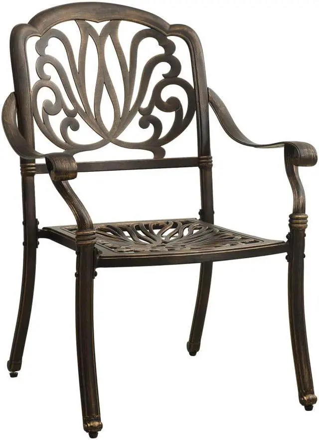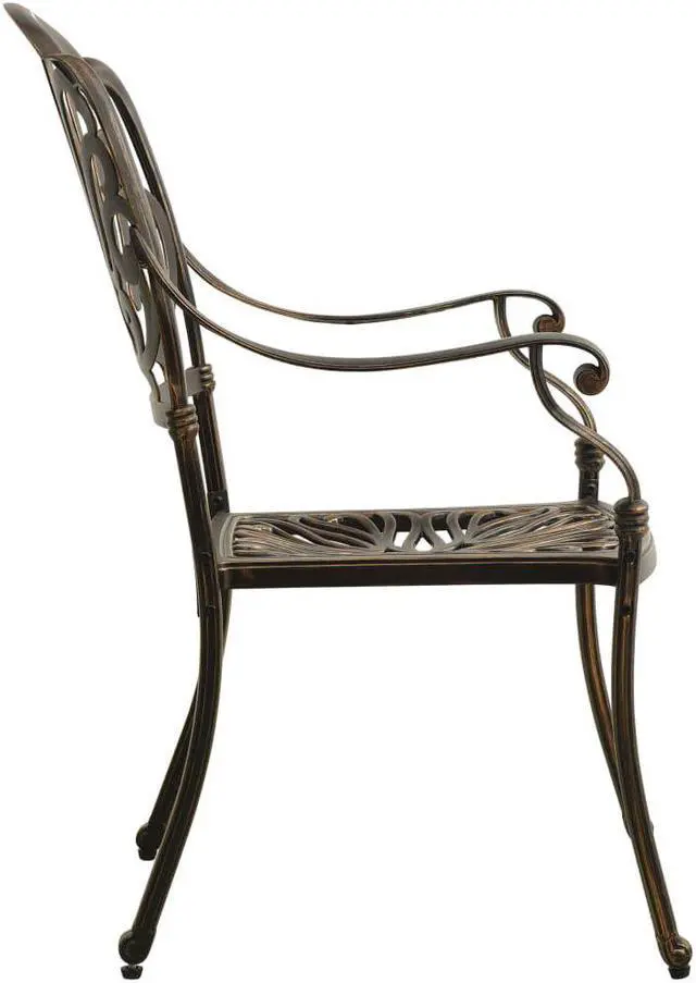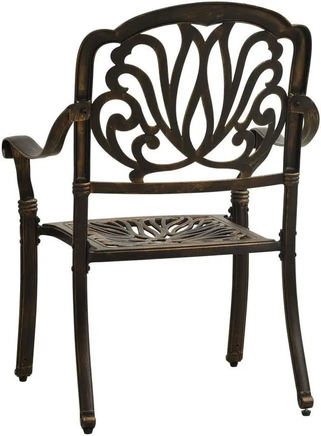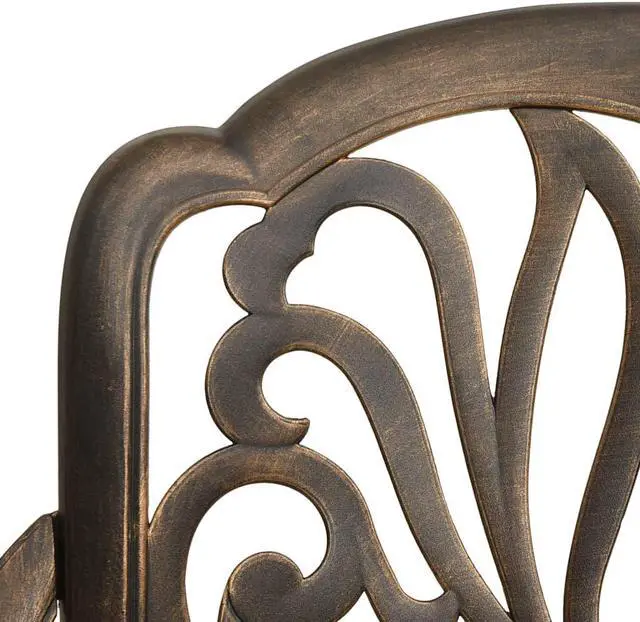 This patio chair set is perfect for having dinner, reading and relaxing with your family and friends. These dining chairs, made of cast aluminum, are both sturdy and durable. The rust-resistant and weather-resistant material makes the chairs ideal for outdoor use. The beautiful seat and back patterns make the armchair an elegant addition to your outdoor space. The chairs are great on their own or complement other outdoor furniture and withstand any weather condition.