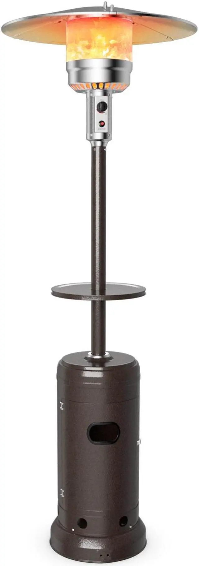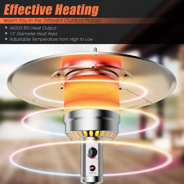 Efficient Heating Performance: Providing a spacious warm area with a diameter of 13', the metal heating element of the outdoor heater has a high power output of 48,000 BTU for faster heating speed. The reflector plate at the top can preferably keep heat in one area. Unlike a charcoal brazier, this gas heater can provide a fire-free and smoke-free.