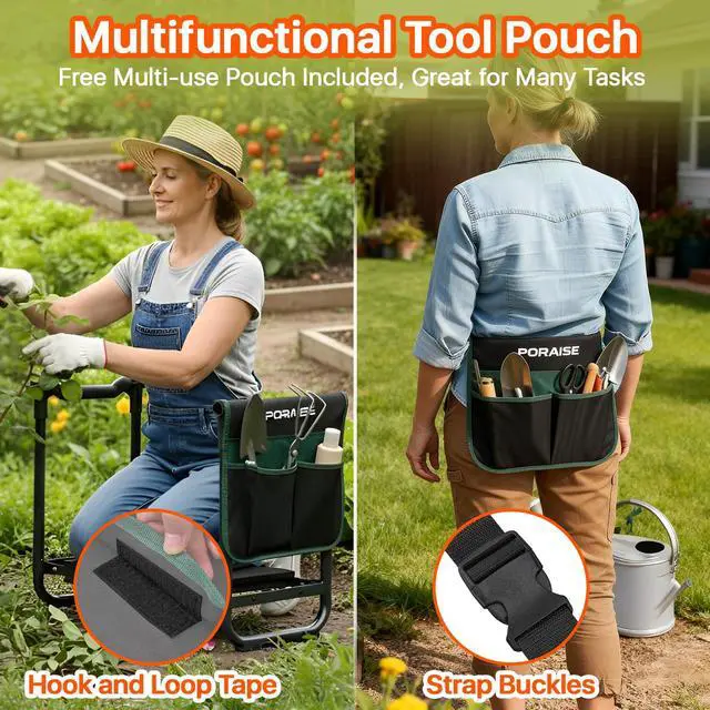 Heavy-Duty Comfort & Support Garden Kneeler and Seat, Extra-wide 10.2" kneeler seat with 1.6" thick EVA foam padding delivers premium comfort for extended gardening, camping, or fishing trips. The soft-yet-firm garden kneeling pad surface protects knees and back while reducing fatigue, perfect for seniors or those with joint pain.