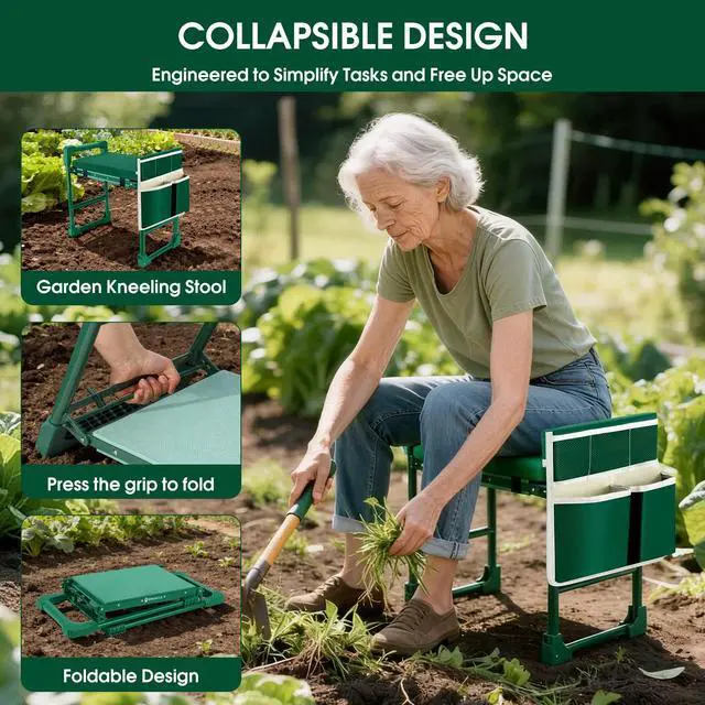 This folding garden kneeler and seat is designed not only for seniors but also for gardening enthusiasts who need extra support and comfort. Great gardening Gifts for Women Men Gardeners. Perfect for seniors and those with limited mobility, this multifunctional kneeler and seat offers a heavy-duty frame that supports up to 420 lbs, ensuring stability and comfort for a variety of gardening tasks. The widened thick soft kneeling pad alleviates knee pressure, while ergonomic handles make standing up and sitting down easier. The foldable design and included tool bag enhance functionality and convenience for all your gardening needs.