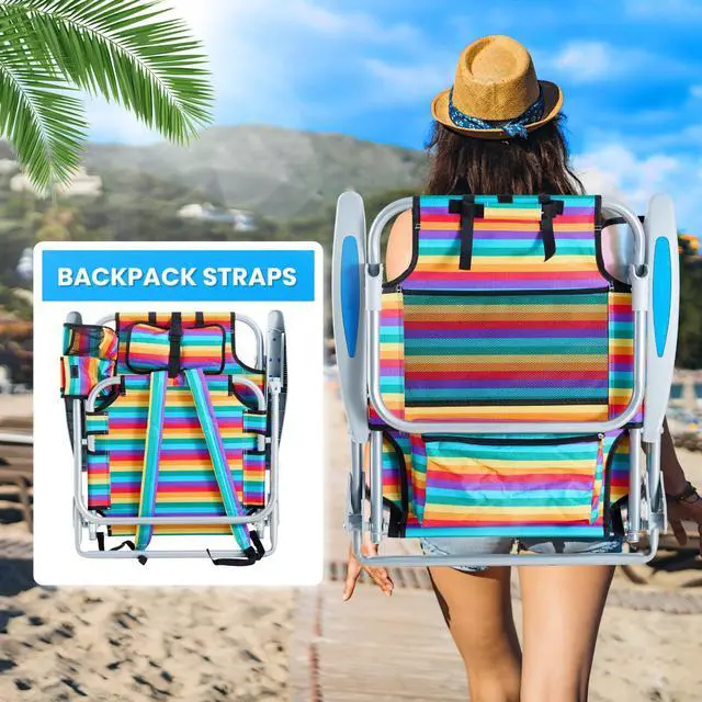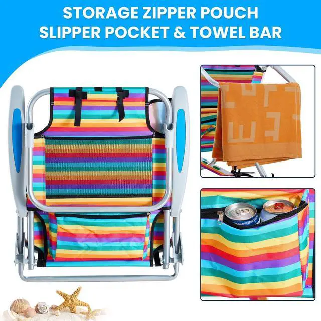 | Item Type Name | Outdoor Camping Chair Lay Flat Folding Backpack Beach Reclining Chair with 4 Positions, Headrest, Cooler Pouch, Cup Holder, Multi Srtiped |