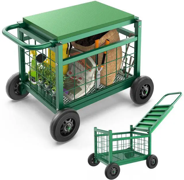 - Rolling garden cart with seat is comfort while gardening, planting or pulling debris from the garden. The Flinter is a premium utility scooter seat stool on wheels.