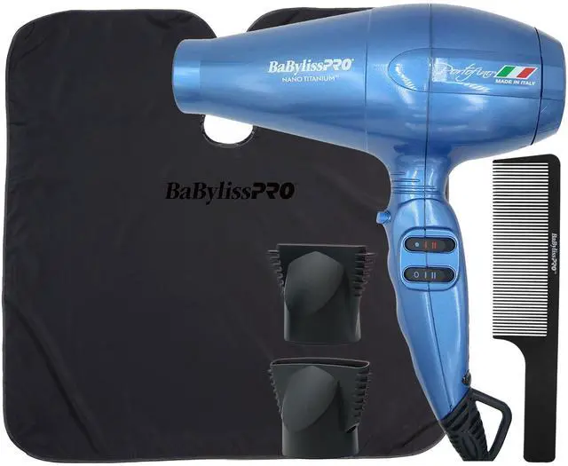 BABYLISS PRO NANO TITANIUM PORTOFINO 6600 FULL-SIZE HAIR DRYER, BLUE #BNT6610N + BABYLISS PRO BARBEROLOGY PROFESSIONAL CUTTING CAPE BBCAPEMB + BABYLISS PRO BARBEROLOGY 9 INCH CLIPPER COMB - BLACKBaByliss Pro Nano Titanium Portofino Full-Size Hair Dryer