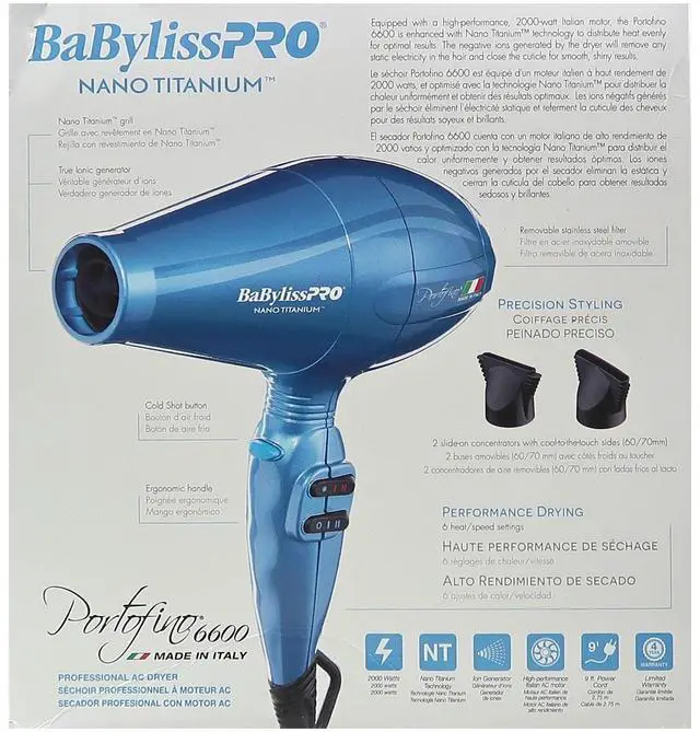 - Babyliss Pro Nano Titanium Portofino 6600 Full-Size Hair Dryer, Blue #BNT6610N