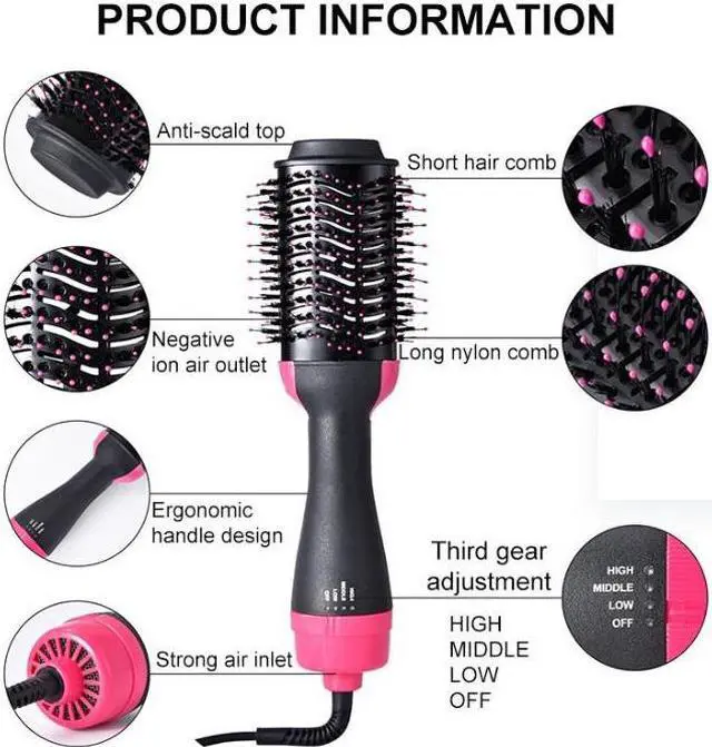 Negative Ion Hair Blow DryerOur hot air hair straightener uses advanced negative ion technology and ceramic coating to prevent frizz and static. Thanks to the combination of nylon pin and tufted bristles, our hair dryer brush minimizes tangling and breakage along with helping provide comfortable scalp massages.