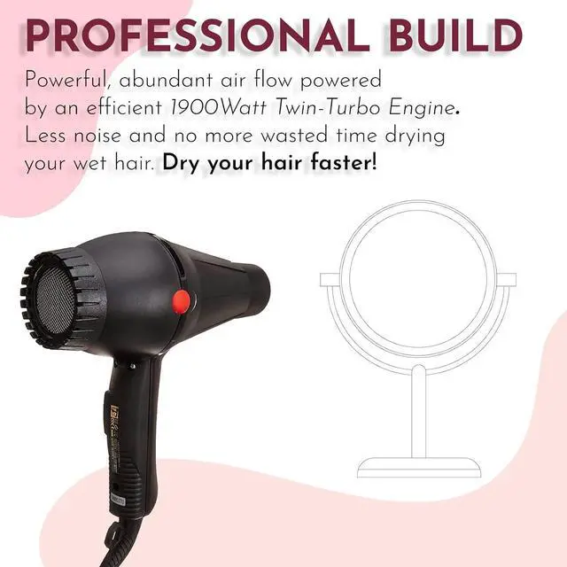 [PROFESSIONAL BUILD] Meets the salon quality standards while being simple and easy to handle for the everyday user. Get salon like results with our high quality 3900 blow dryer while in the comfort of your own home.