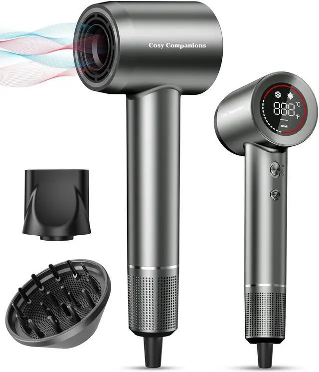 Ultra-Fast Drying: Cosy Companions hair blow dryer is equipped with a 150000 RPM high-speed brushless motor and the wind speed up to 36 m/s, which strong airflow can dry your hair in a short time and is 5x faster than traditional hair dryers