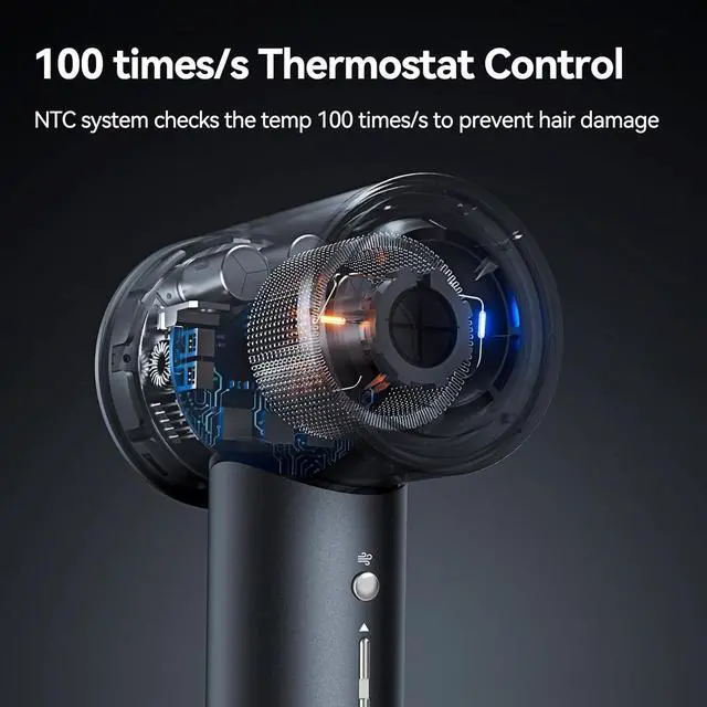 Air Speed & Heat Settings and NTC Thermo Control Customize your hair drying experience with three adjustable airspeeds and four heat modes. Hot and cold circulation modes avoid hair damage. Thermo-Control monitors the temperature 100 time/s to prevent your hair from being damaged by extreme heat while fast drying.