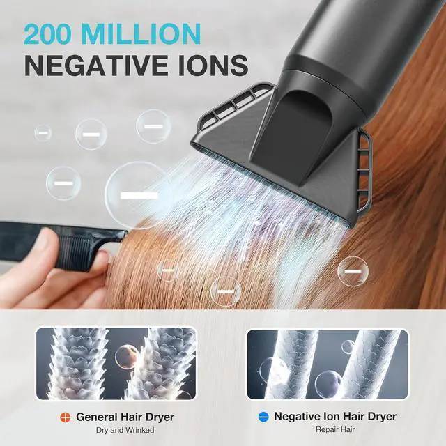 Advanced Negative Ionic Hair Care: Boost the glamour of your hair with our advanced ion function that increase hair smoothness and shine by 30%, while reducing frizz by 50%