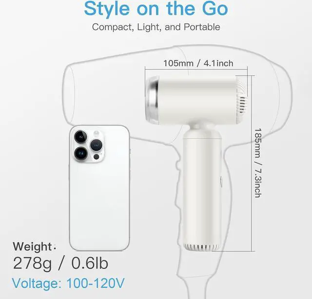 Portable & LightweightWebeauty mini blow dryer weighs only 0.62 lb /278g (excluding power cord), compact and portable, suitable for home and travel. The small hairdryer operates at a voltage of 110V. suitable for travel in America. If used in other voltage environments, a transformer (not a conversion plug) is required.